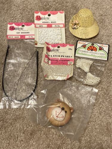 Vtg Lot Craft Supplies Wishers Beads Bear Head Stamen Dative