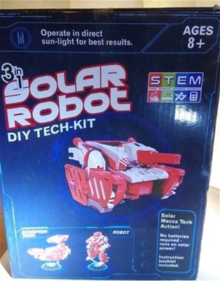 3 in 1 Solar Robot Diy Tech Kit Ages 8+ Stem Runs On Solar Action